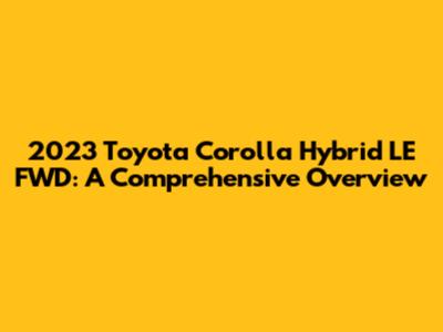 2023 Toyota Corolla Hybrid LE FWD: A Comprehensive Overview