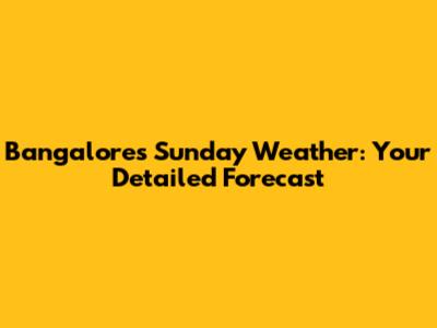 Bangalore's Sunday Weather: Your Detailed Forecast