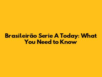 Brasileirão Serie A Today: What You Need To Know
