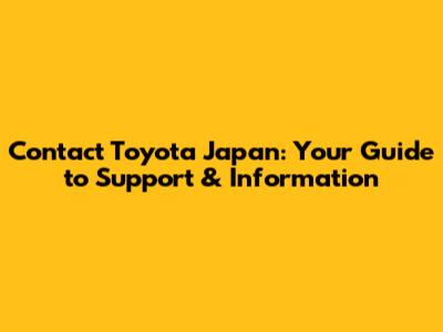 Contact Toyota Japan: Your Guide To Support & Information
