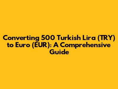 Hey guys! Ever wondered how much your 500 Turkish Lira is worth in Euros? You're not alone! Currency conversion can be a bit tricky, but don't worry, I'm here to break it down for you. In this article, we'll dive deep into the process of converting TRY to EUR, explore the factors that influence exchange rates, and provide you with some handy tools and tips to make your conversions a breeze. Whether you're planning a trip to Europe, sending money abroad, or just curious about exchange rates, this guide has got you covered.