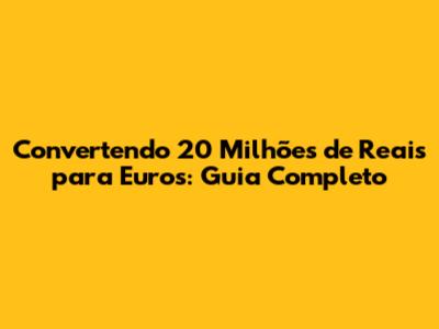 Convertendo 20 Milhões De Reais Para Euros: Guia Completo