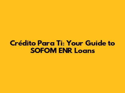Crédito Para Ti: Your Guide To SOFOM ENR Loans