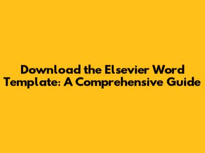 Download The Elsevier Word Template: A Comprehensive Guide