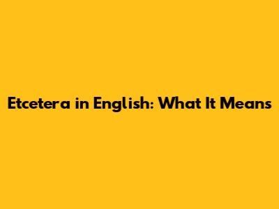 Etcetera In English: What It Means