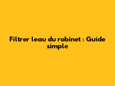 Filtrer L'eau Du Robinet : Guide Simple