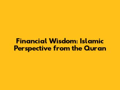 Financial Wisdom: Islamic Perspective From The Quran