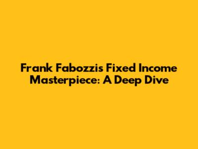 Hey guys! Today, we're diving deep into the world of fixed income with a focus on a true classic: the Frank Fabozzi Fixed Income book. If you're serious about understanding bonds, mortgage-backed securities, and everything in between, then you've probably heard of this legendary resource. Let's break down why it's so important, what you'll find inside, and how it can help you become a fixed income pro.