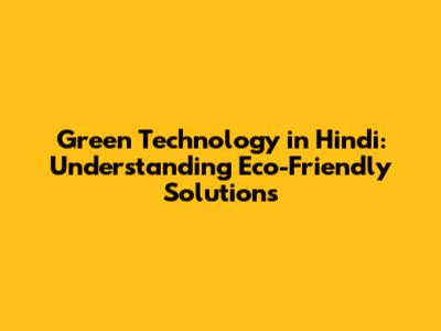 Green Technology In Hindi: Eco-Friendly Solutions