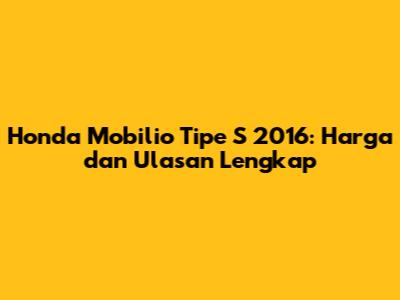 Honda Mobilio Tipe S 2016: Harga Dan Ulasan Lengkap