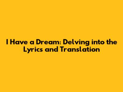 I Have A Dream: Lyrics & Translation Explained