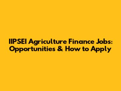 IIPSEI Agriculture Finance Jobs: Opportunities & How To Apply
