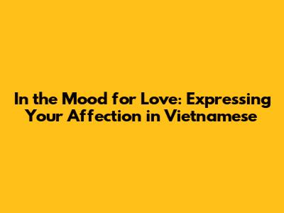 Hey guys! Ever watched Wong Kar-Wai's In the Mood for Love and felt like you wanted to express that same romantic yearning, but in Vietnamese? Well, you've come to the right place! This article will dive deep into how to say "In the Mood for Love" in Vietnamese, explore the nuances of expressing affection, and give you a little cultural context to sprinkle into your romantic endeavors. So, grab your cà phê sữa đá, settle in, and let's get started!