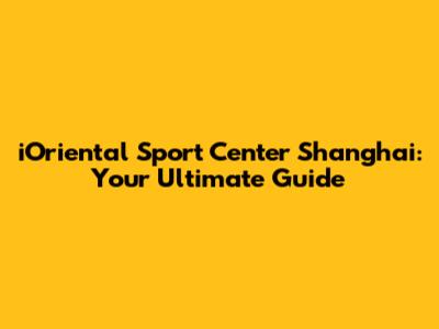IOriental Sport Center Shanghai: Your Ultimate Guide