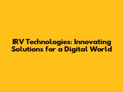 IRV Technologies: Innovating Solutions For A Digital World