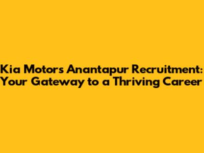 Kia Motors Anantapur Recruitment: Opportunities Await!