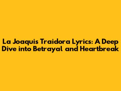 Hey music lovers! Ever felt the sting of betrayal? Well, if you have, then you're definitely going to connect with La Joaqui's hit song, "Traidora." This track is more than just a catchy tune; it's a raw and honest exploration of heartbreak, infidelity, and the emotional turmoil that comes with it. In this article, we're going to dive deep into the lyrics of "Traidora," break down the meaning, and explore why it resonates so strongly with so many people. So, buckle up, because we're about to get real!