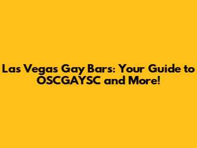 Las Vegas Gay Bars: Your Guide To OSCGAYSC And More!