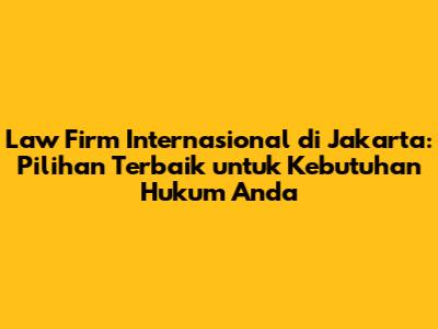 Law firm internasional di Jakarta adalah firma hukum yang memiliki jaringan global dan menawarkan layanan hukum lintas batas kepada klien mereka. Mereka biasanya memiliki kantor di berbagai negara dan mampu memberikan nasihat hukum yang komprehensif tentang masalah hukum internasional. Kehadiran mereka di Jakarta sangat penting karena kota ini merupakan pusat bisnis utama di Asia Tenggara dan pintu gerbang ke pasar Indonesia yang berkembang pesat. Firma-firma ini menarik klien dari berbagai industri, termasuk keuangan, energi, teknologi, dan manufaktur. Mereka seringkali memiliki tim pengacara yang sangat berpengalaman yang memiliki spesialisasi dalam berbagai bidang hukum, seperti hukum perusahaan, arbitrase internasional, properti, dan sengketa komersial.