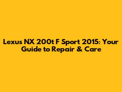 Lexus NX 200t F Sport 2015: Your Guide To Repair & Care