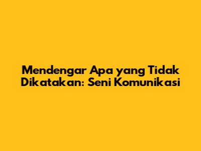 Mendengar Apa Yang Tidak Dikatakan: Seni Komunikasi