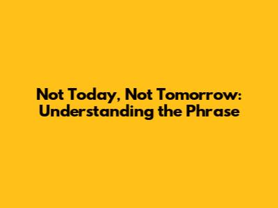 Not Today, Not Tomorrow: Understanding The Phrase