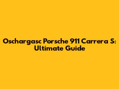 Oschargasc Porsche 911 Carrera S: Ultimate Guide