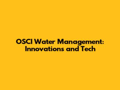 OSCI Water Management: Innovations And Tech