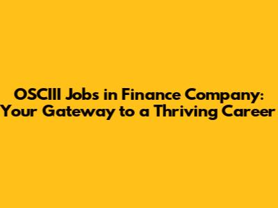 OSCIII Jobs In Finance: Opportunities & How To Apply