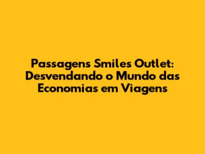 • O Passagens Smiles Outlet é um portal dentro do programa Smiles que oferece passagens aéreas com descontos especiais.
