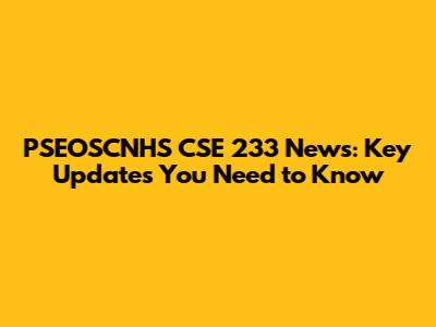 PSEOSCNHS CSE 233 News: Key Updates You Need To Know