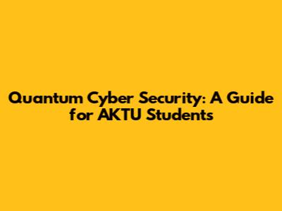 Quantum Cyber Security: A Guide For AKTU Students