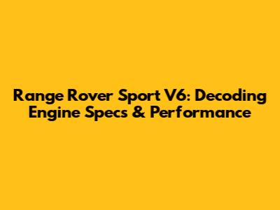 Range Rover Sport V6: Engine Specs & Performance