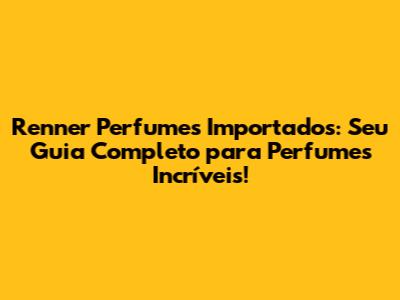 Renner Perfumes Importados: Guia Completo Para Perfumes Incríveis!