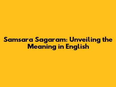 Samsara Sagaram: Unveiling The Meaning In English