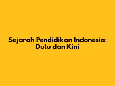 Sejarah Pendidikan Indonesia: Dulu Dan Kini
