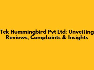 Tek Hummingbird Pvt Ltd: Unveiling Reviews, Complaints & Insights