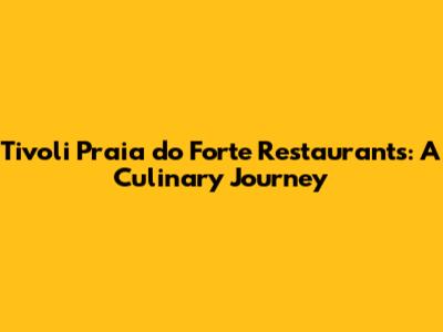 Hey foodies and travel lovers! If you're planning a trip to the stunning Tivoli Ecoresort Praia do Forte, you're in for a treat, especially when it comes to the grub. Seriously, the Tivoli Praia do Forte restaurants are a massive part of what makes this place so special. We're talking about a serious spread of culinary experiences, from fresh-off-the-boat seafood to international flavors that'll transport your taste buds straight to another continent. Forget about boring resort food, guys; this is a whole different ballgame. The resort really nails it when it comes to offering variety and quality, ensuring that every single meal is an event in itself. Whether you're a picky eater or a seasoned gourmand, there's something here that's guaranteed to make you happy. Think about waking up to a gourmet breakfast, grabbing a casual beachside lunch, and then indulging in a sophisticated dinner – all without leaving the resort! It’s the kind of place where you can truly relax and let someone else handle the cooking, and trust me, they do it exceptionally well.
