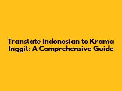 Translate Indonesian To Krama Inggil: A Comprehensive Guide