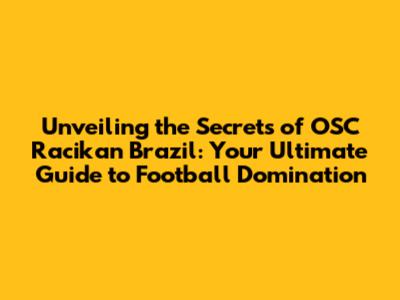 Unlocking Brazilian Soccer Success: The OSC Racikan Guide