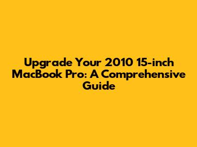 Upgrade Your 2010 15-inch MacBook Pro: A Comprehensive Guide