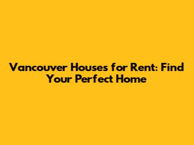 Vancouver Houses For Rent: Find Your Perfect Home