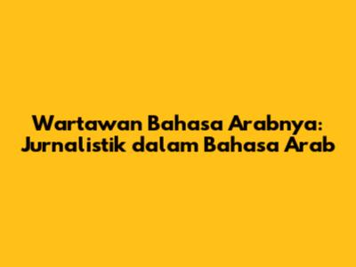 Wartawan Bahasa Arabnya: Jurnalistik Dalam Bahasa Arab
