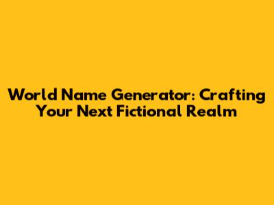 World Name Generator: Find Your Next Fictional World Name