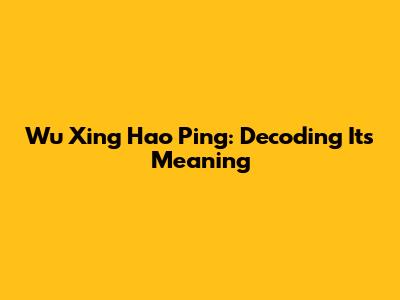 Wu Xing Hao Ping: Understanding The Meaning